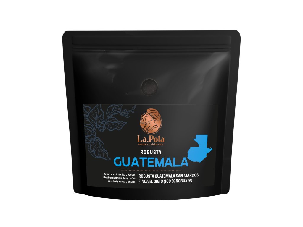 Tato kvalitní robusta pochází z Guatemaly, z oblasti San Marcos, konkrétně z farmy Finca El Sigio, která je známá pečlivým přístupem ke zpracování a stabilní kvalitou své produkce. Region San Marcos se nachází v sopečné oblasti na jihozápadě země, což se pozitivně projevuje na plnosti a výraznosti chuti.